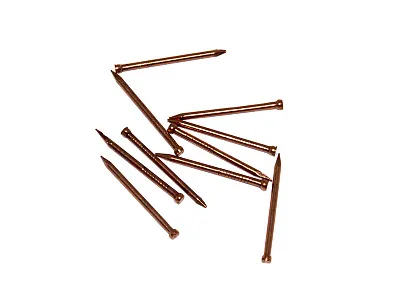 Финишные гвозди с покрытием из меди используются при отделочных работах. Изделия состоят из небольшой шляпки и гладкого заостренного наконечника. С их помощью производится монтаж плинтусов, дверных наличников, декоративных панелей.